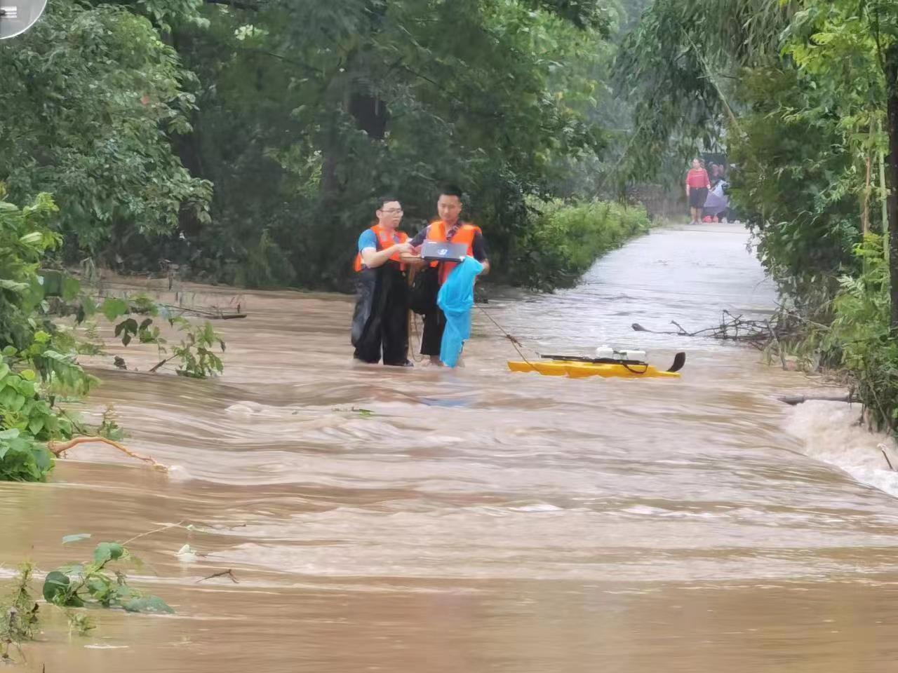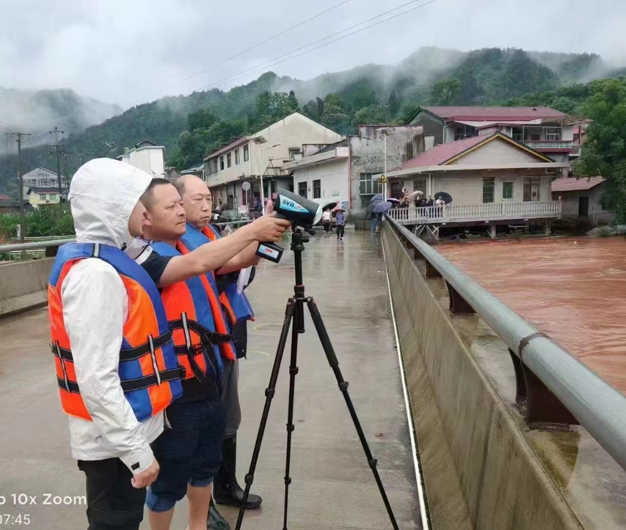 预警发布后,沅陵县水文局负责人迅速组织应急监测队顶风冒雨,整装出发,连夜奔赴现场开展应急监测,迎测洪峰。此时沅陵上空暴雨如注,在去往借母溪站的途中,突遇道路塌方,交通阻断,应急监测队及时启动了远程在线测流,补充数据。