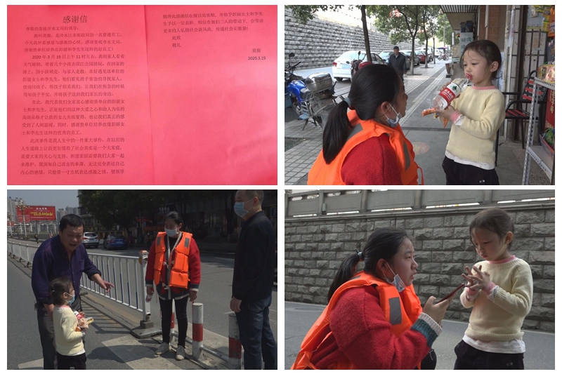 事情发生在3月19日上午,娄底水文中心正在冷水江大桥上组织汛前高洪演练。一个5岁左右的小女孩独自在桥上徘徊,桥上车来车往,很是危险。冷水江水文局李新宜同志主动询问小女孩,了解到她与家人走散了。小女孩年龄很小,不能准确说清楚家庭住址,只知道妈妈的工作单位。娄底水文中心党委书记、主任刘鹏翼立马拿出手机,通过114查询到了她妈妈工作单位的电话,但是电话一直占线或无人接听。小女孩开始烦躁起来,吵着要去找家人,这时,彭丽同志站了出来,她是一位有两个孩子的妈妈,她将小女孩安抚下来并了解到更多孩子的信息。接近中午时分,电话终于接通,顺利找到小女孩的妈妈,并将其安全送到家人面前。