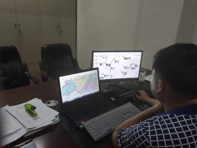21日23时,怀化水文中心对酉水高砌头站发出了即将出现警戒水位洪水的第一份预警单,并在22日1时发出了高砌头站第一份预报单。由于高砌头站遭受洪水袭击,监测设备受损,水文应急监测队成为雨夜中的急行军,争分夺秒前往现场进行检修,并协助高砌头站开展高洪水文测验,确保水情数据测得到、报得出。