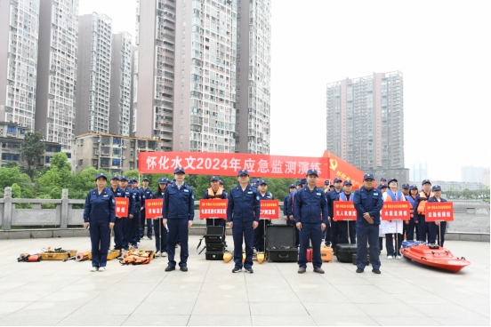 此次演练模拟怀化城区发生了超标准暴雨洪水,并冲毁了某矿区,同时造成河道水污染突发事件,灾情严重。水文应急监测队伍立即奔赴重灾区,收集水位、流量、水质等数据并分析,及时发布下游水文预警,为政府抗洪救灾提供水文数据支撑。