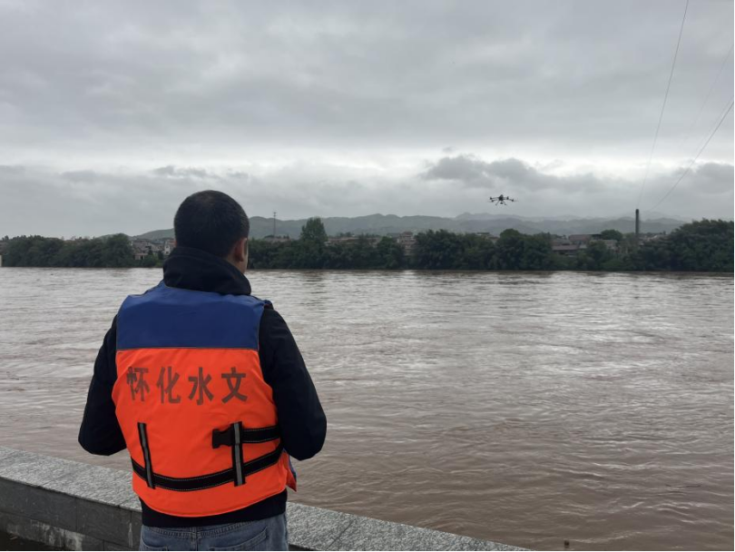麻阳陶伊水文站内,无人机腾空而起、自动缆道测流系统高效运转,监测人员根据水情变化加密监测频次,开展流量测验、水位观测等作业,一份份流量、水位数据即时传达。怀化水文中心机关水情值班室里,同样一片灯火通明,水情值班人员全神贯注,继续紧盯屏幕,分析、计算、编制材料,电话声、商讨声从未间断。怀化水文上下联动,共同筑起水文数据防线,在暴雨中、洪水边默默守护着万家灯火。