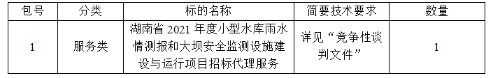 采购项目名称:湖南省2021年度小型水库雨水情测报和大坝安全监测设施建设与运行项目招标代理服务