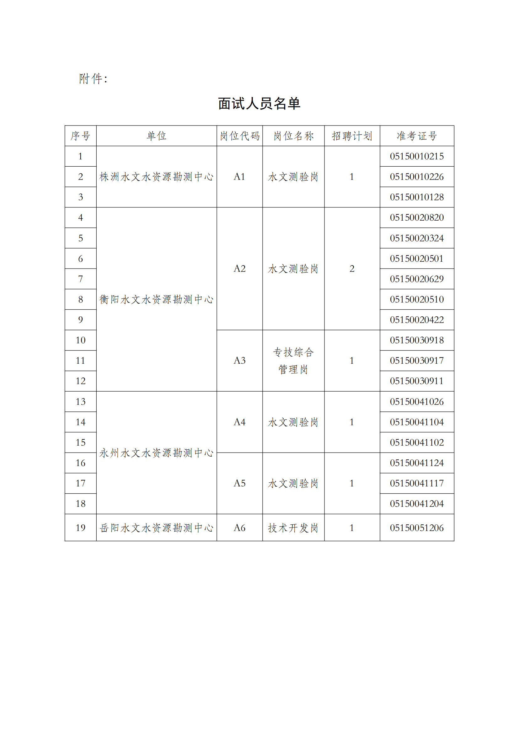 根据《湖南省水文水资源勘测中心所属事业单位2021年公开招聘公告》的要求,经报名、资格初审、笔试、资格复审等程序,现将面试有关事项通知如下: