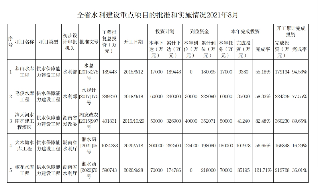 名称: 全省水利建设重点项目的批准和实施情况2021年8月