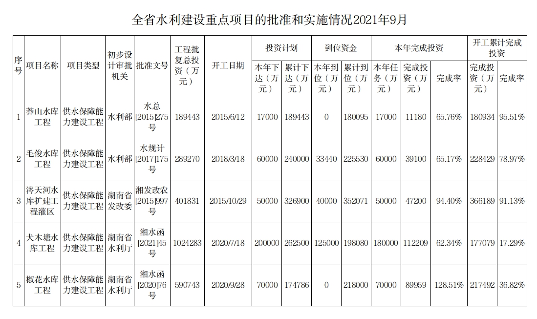 名称: 全省水利建设重点项目的批准和实施情况2021年9月