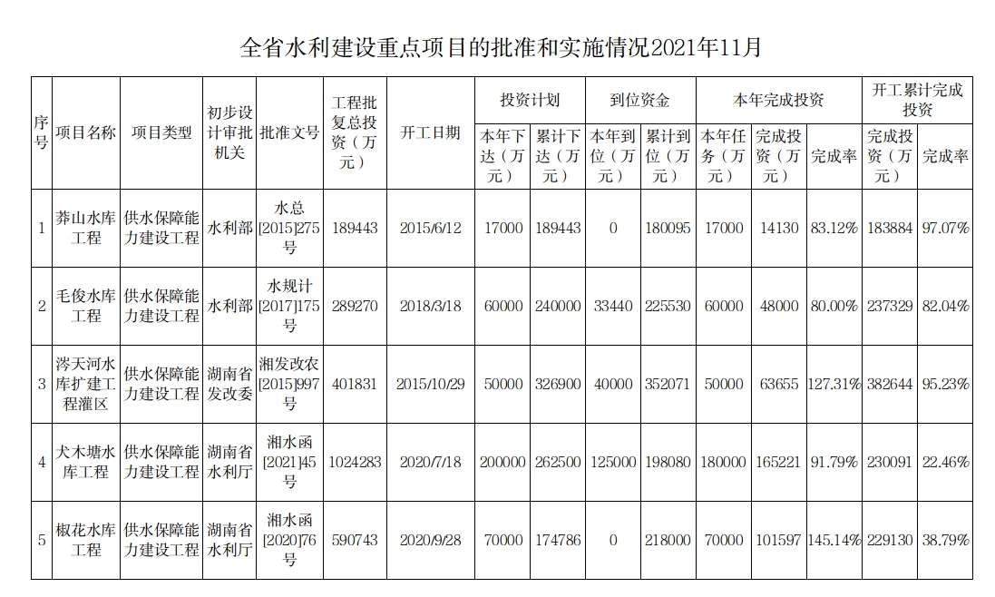 名称: 全省水利建设重点项目的批准和实施情况2021年11月