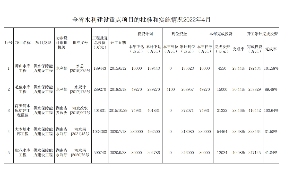名称: 全省水利建设重点项目的批准和实施情况2022年4月