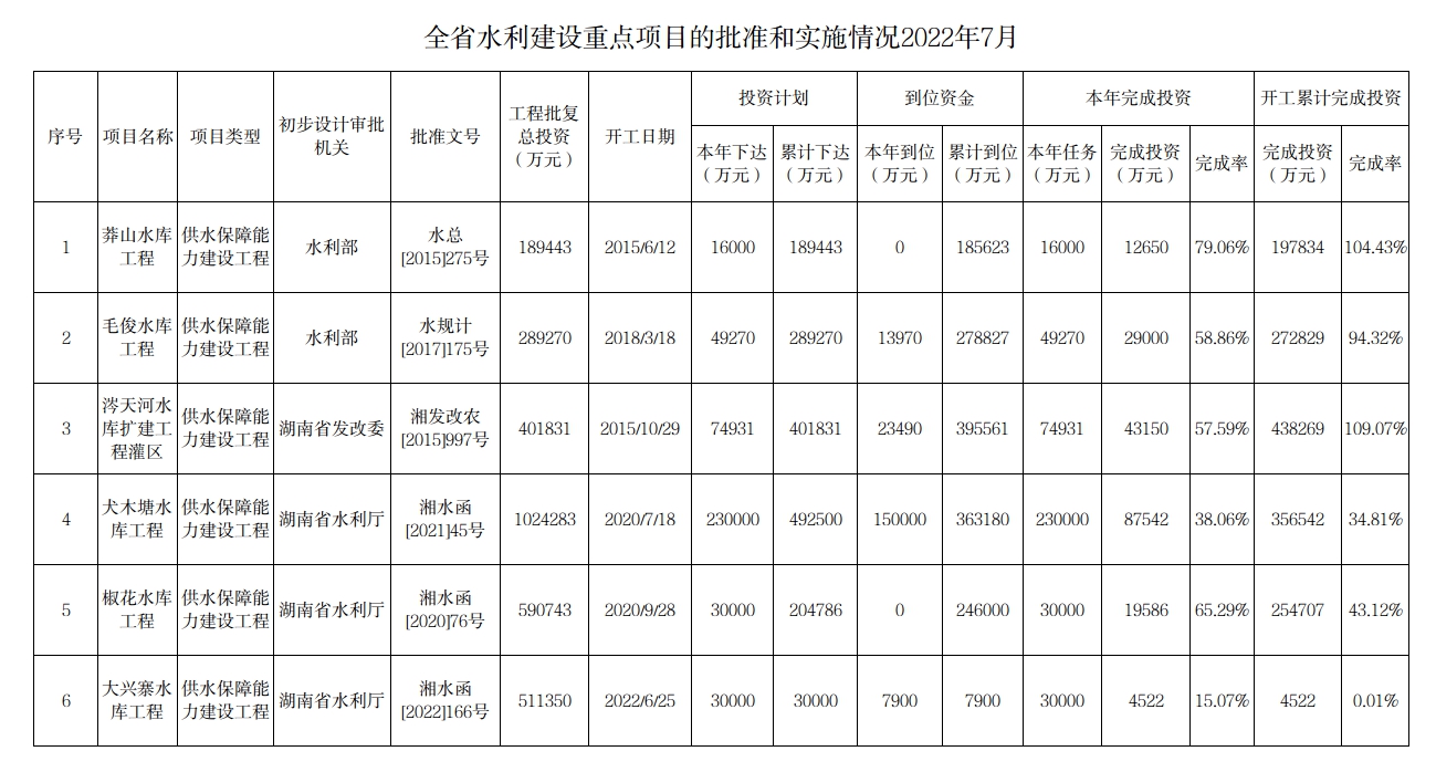 名称: 全省水利建设重点项目的批准和实施情况2022年7月