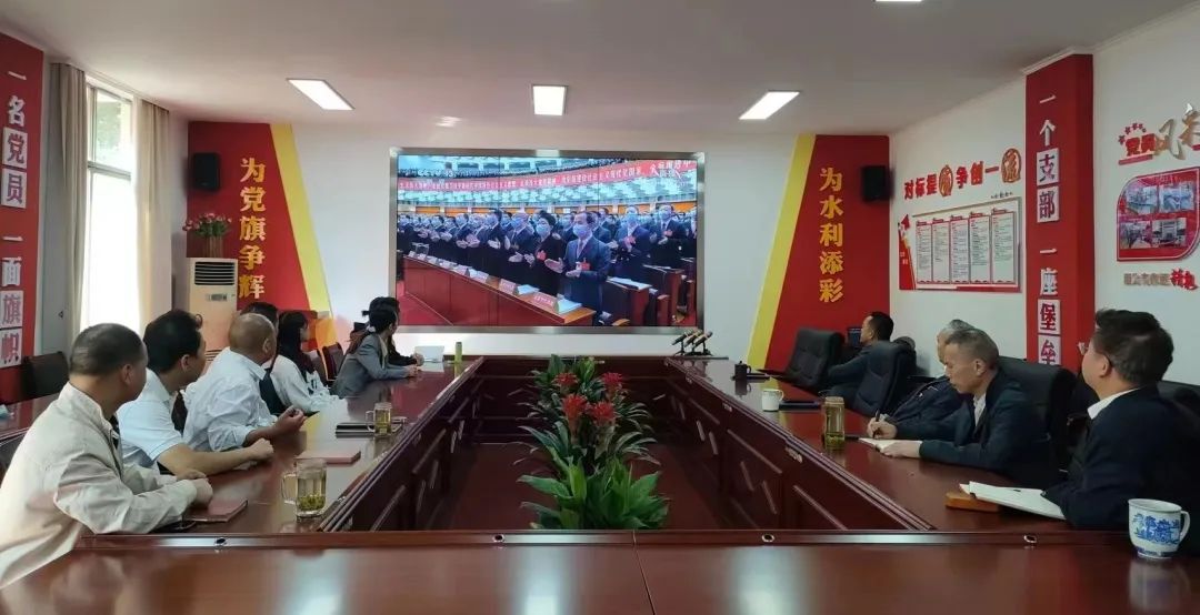 与此同时,厅机关副厅级单位党委、厅直各单位党委理论学习中心组按照上下同题、同步推进的要求进行集体学习,组织党员干部职工共3156人在各单位的会议室、值班室、调度室、检测站、干渠管理所、电站等场所共设立112个分会场,一同收看党的二十大开幕大会直播。