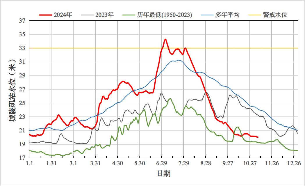 11月7日8时,洞庭湖城陵矶站水位19.99米,较多年同期均值偏低4.12米。