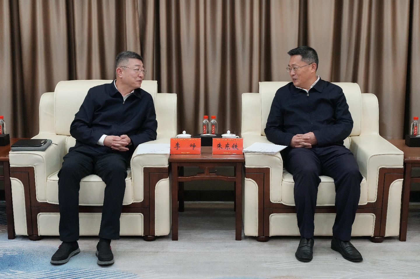 1月20日,省水利厅党组书记、厅长朱东铁会见水电五局党委书记、董事长李峥一行,双方就协作推进重大水利工程建设交换了意见。厅党组成员、副厅长杨诗君,水电五局党委委员、副总经理贺祝出席,厅有关部门单位、水电五局、水电五局华中公司相关负责同志参加。