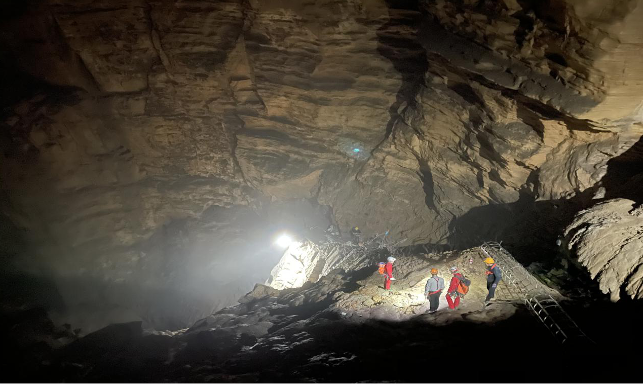 为确保利用好天坑水资源,解决周边群众饮水水源问题,县水利局和象市镇政府商议,拟从该天坑抽水取水。基于该天坑地势险要、施工难度大、安全风险高等情况。县水利局党组、象市镇党委高度重视施工安全问题,多次召开会议强调要始终把安全放在第一位,并派县水利局水旱灾害防御股股长卓树新,跟随专业探险队下洞进行安全督导。