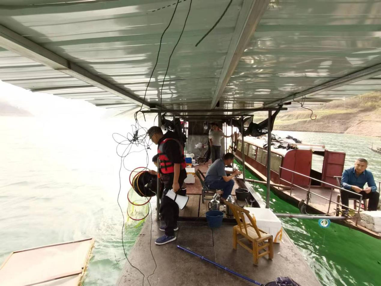 人潮溪镇河道警长在非法垂钓船只现场开展宣传劝返工作。