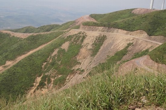 2016年9月,设计院受业主委托进行黄甲岭风电场水土保持整治设计。坚持“绿色环保、和谐发展”的理念,针对不同地质道路边坡采取不同水保措施设计,设计院对开挖路堑边坡为破碎岩石的采取挂麦克垫结合锚固系统后再进行喷播快速植生措施;对道路下边坡溜渣体较长的位置,采取锚杆结合六边形钢绞网固坡系统,对溜渣体进行稳固后再采取喷播快速植生措施。这两种复绿措施在国内南方风电场为首次采用,解决了破碎岩质边坡及长溜渣体边坡复绿的科技难题。工程建设各项水土保持措施设计布局合理,措施效果显著,质量优良。水土流失防治指标满足设计要求。其中,水土流失治理面积50公顷,水土流失总治理度97%,达到防治标准,充渣流失得到有效控制,挡渣率95%,工程建设区土壤流失控制比为1.0,恢复林草植被面积24.7公顷,林草植被恢复率99%,林草覆盖率43%,达到防治标准。