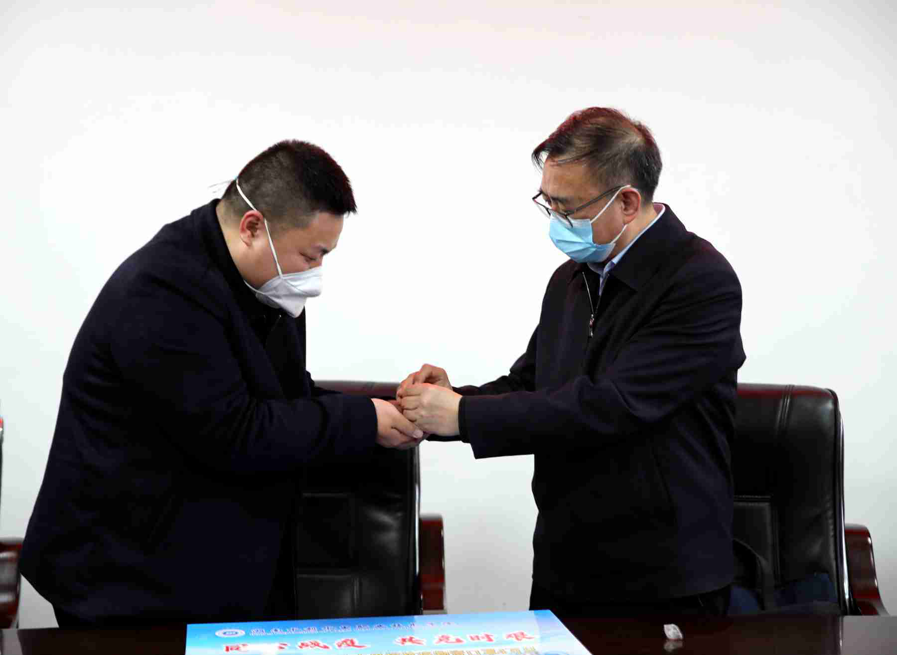 捐赠仪式上,赵荣深情表达了对母校的感谢,“在母校三年的时光改变了我的人生轨迹,教会我感恩,教会我干事、创事、谋事,每年我都会回校看看,感谢母校对我的培养,这次也希望为母校防疫工作贡献我的一份力量!”