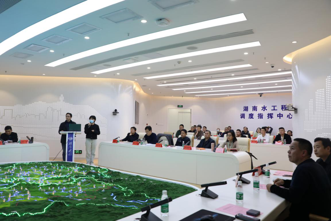 考察组在调度指挥中心观摩了湖南智慧水利综合展示平台和洞庭湖智慧水利综合展示平台,听取省厅信息化建设成效分享和沅水流域数字孪生建设相关情况介绍,并就深入推进智慧水利、省市信息化协同、共建共享等方面进行了探讨交流。常德市水利局表示将高度重视信息化建设,深度融合业务需求和系统建设,实时更新基础数据,加强成果运用,提升工作质效。