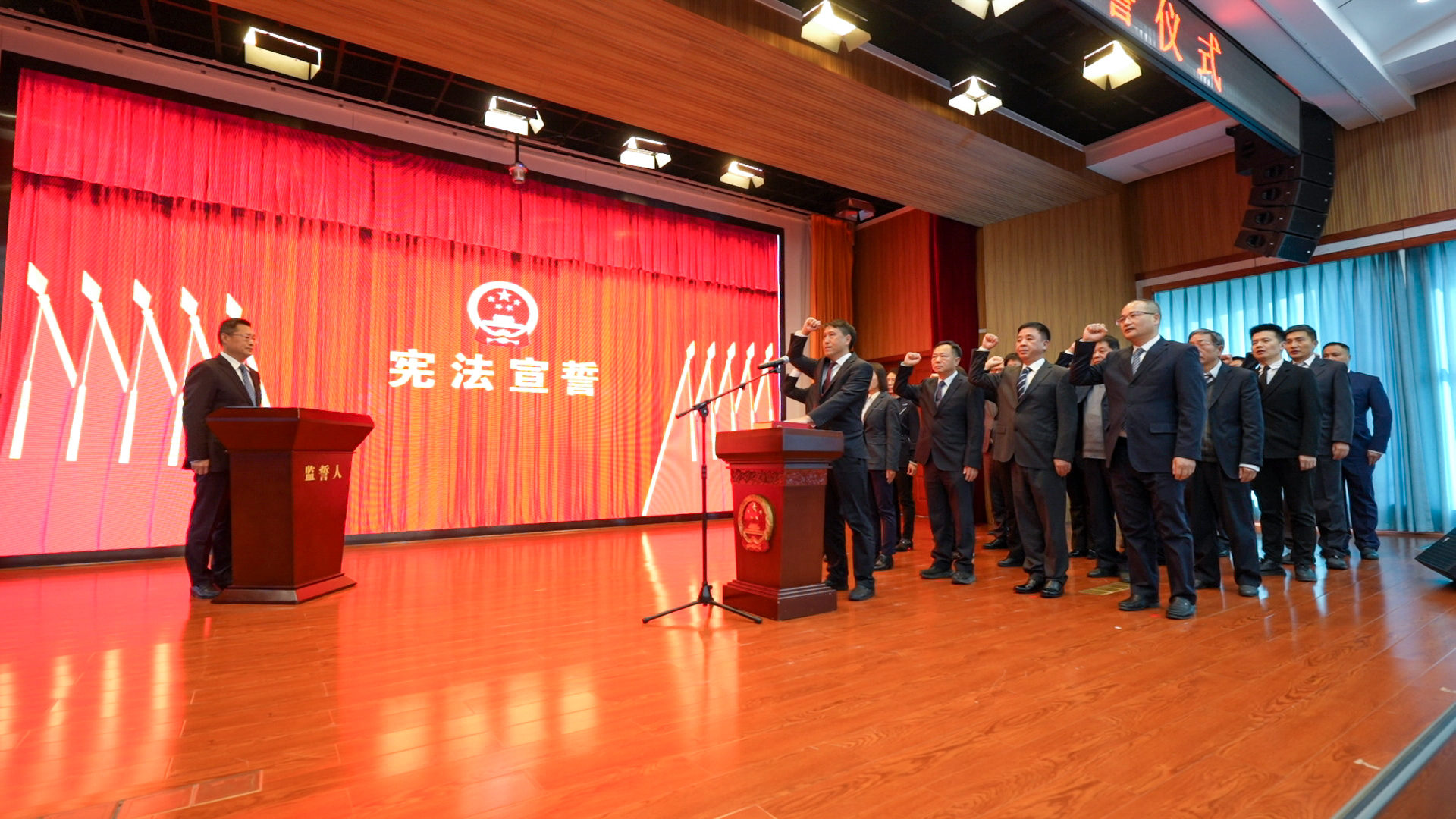 在宪法宣誓仪式上,厅机关26名2025年以来新提拔晋升的副处级以上干部列队肃立,庄严宣誓。铮铮誓言铿锵有力,既彰显了对宪法的尊崇敬畏,也凝聚了履职尽责的坚定决心。