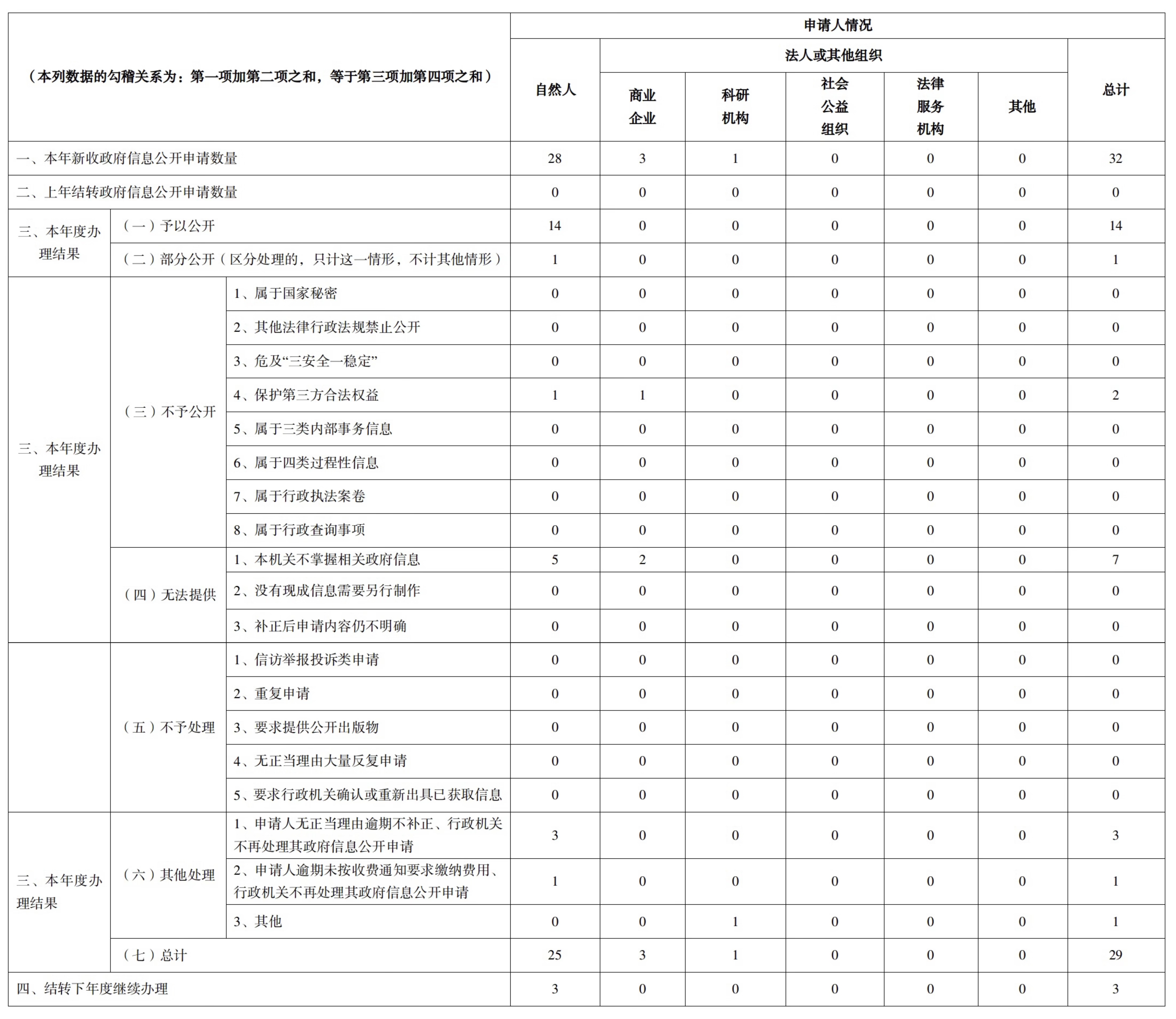 三、行政机关收到和处理政府信息公开申请情况