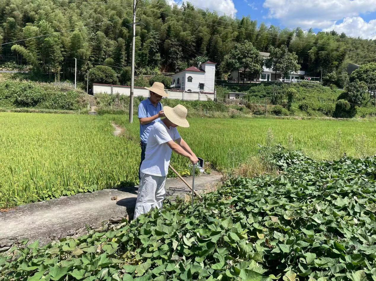 益阳水文旱情监测小组在蒙公塘水文站附近农田实施监测
